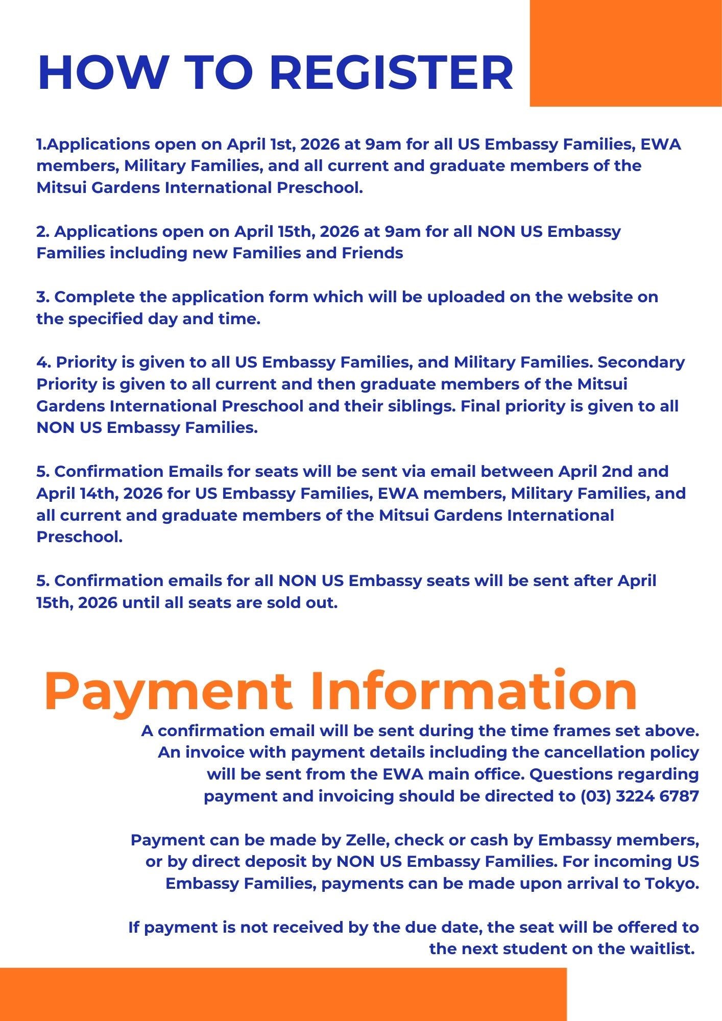 Registration Opens April 1st at 9am for all EWA, and Mitsui Members.